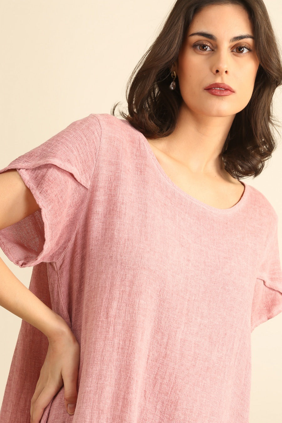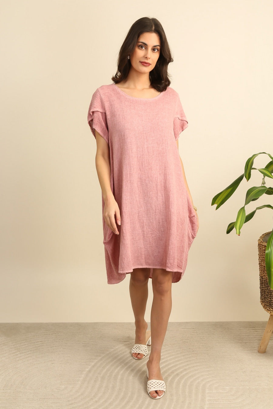 Crafted from a luxurious linen and cotton blend, this Italian-made dress combines breathable comfort with effortless elegance. Designed in one size 42-46 (UK 14-18) with a relaxed, loose silhouette and round neckline, it flatters all body shapes while keeping you cool and comfortable. A versatile wardrobe essential that transcends seasons and occasions.