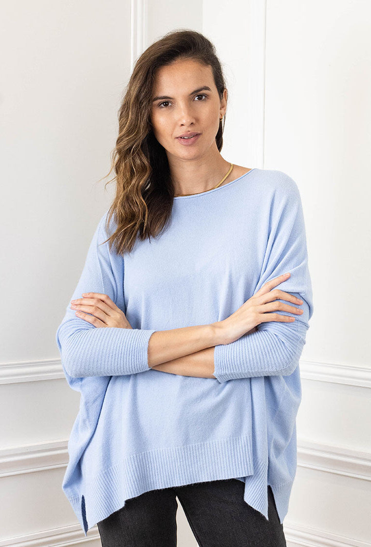 Indulge in the refined comfort of this Italian-made oversized sweater, crafted with a luxuriously soft texture that has a cashmere feel. The relaxed silhouette and round neckline offer understated elegance, while feature long sleeves provide versatile layering options for any season. Designed as a true one-size piece, it gracefully accommodates sizes 36–52 (UK 8-24), ensuring a flattering fit for all. Made with Italian precision and premium materials, this sweater becomes your go-to for effortless, elevated style—equally at home with weekend basics or dressed up for refined occasions.