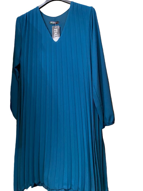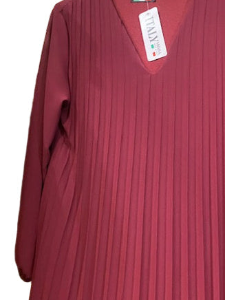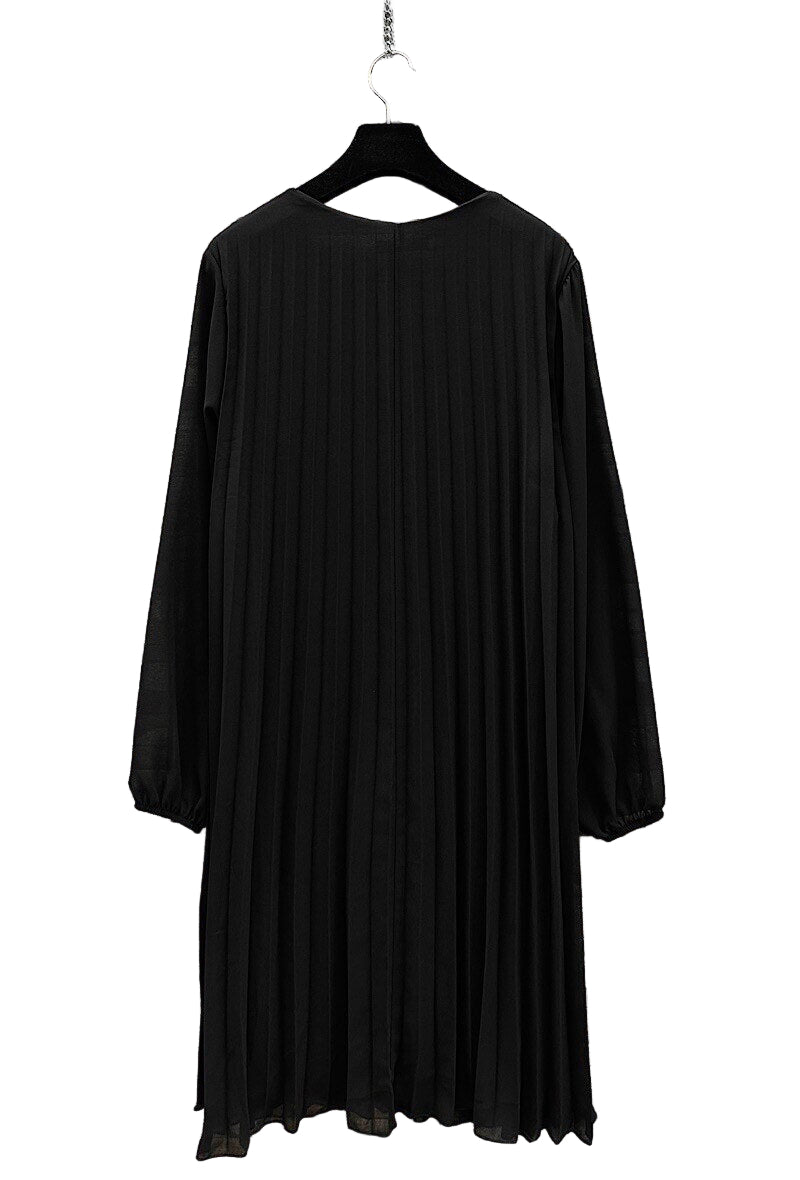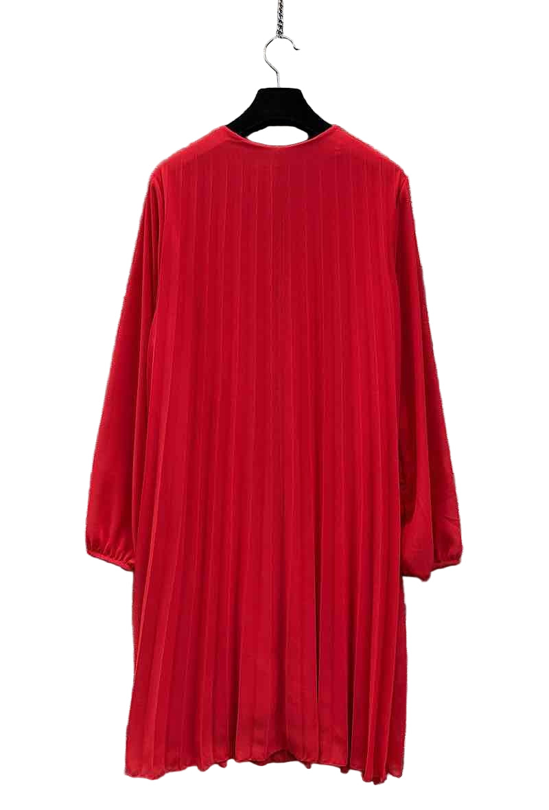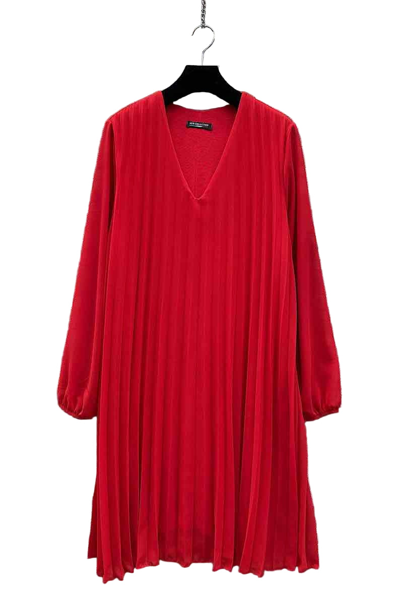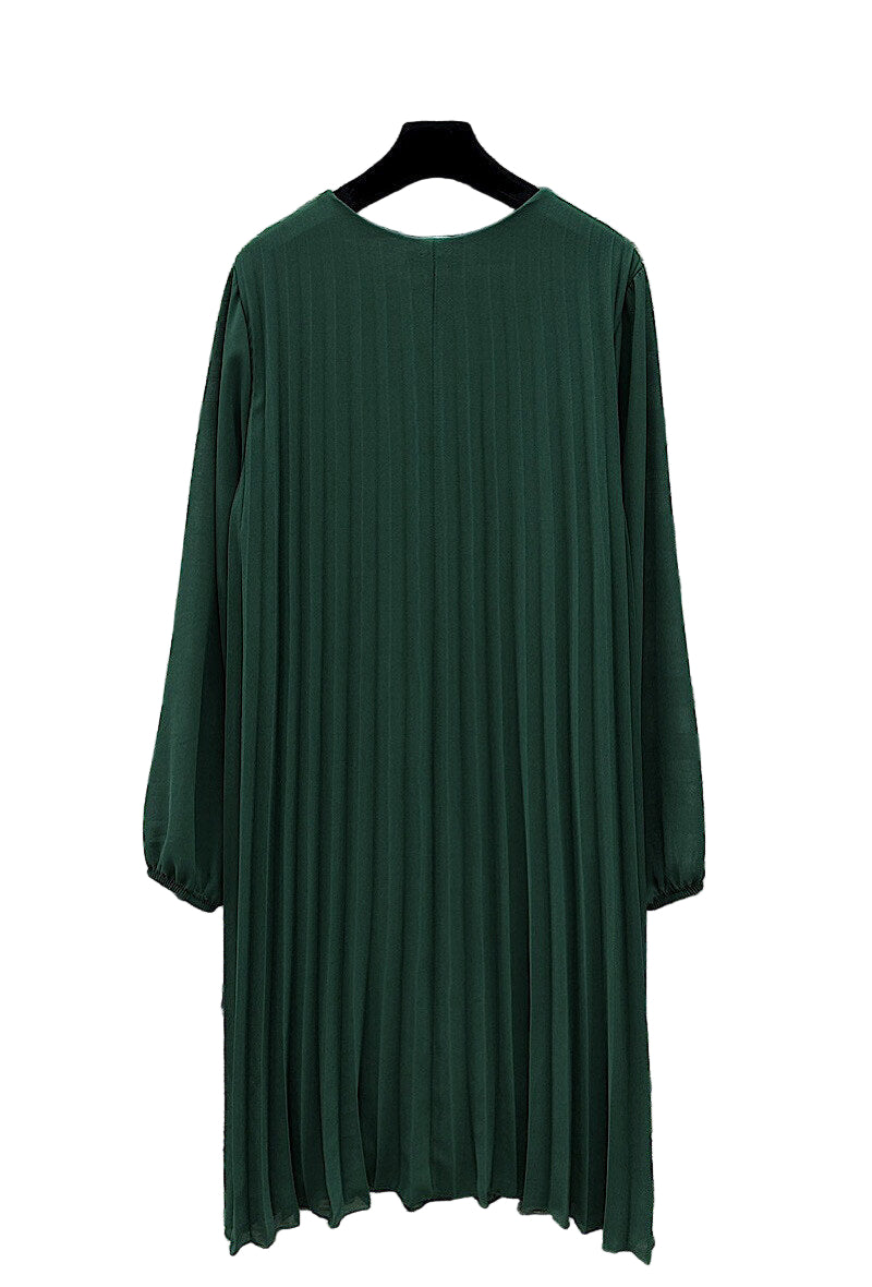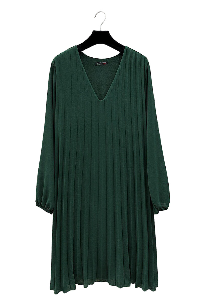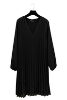• Pleated v neck long sleeved lined dress