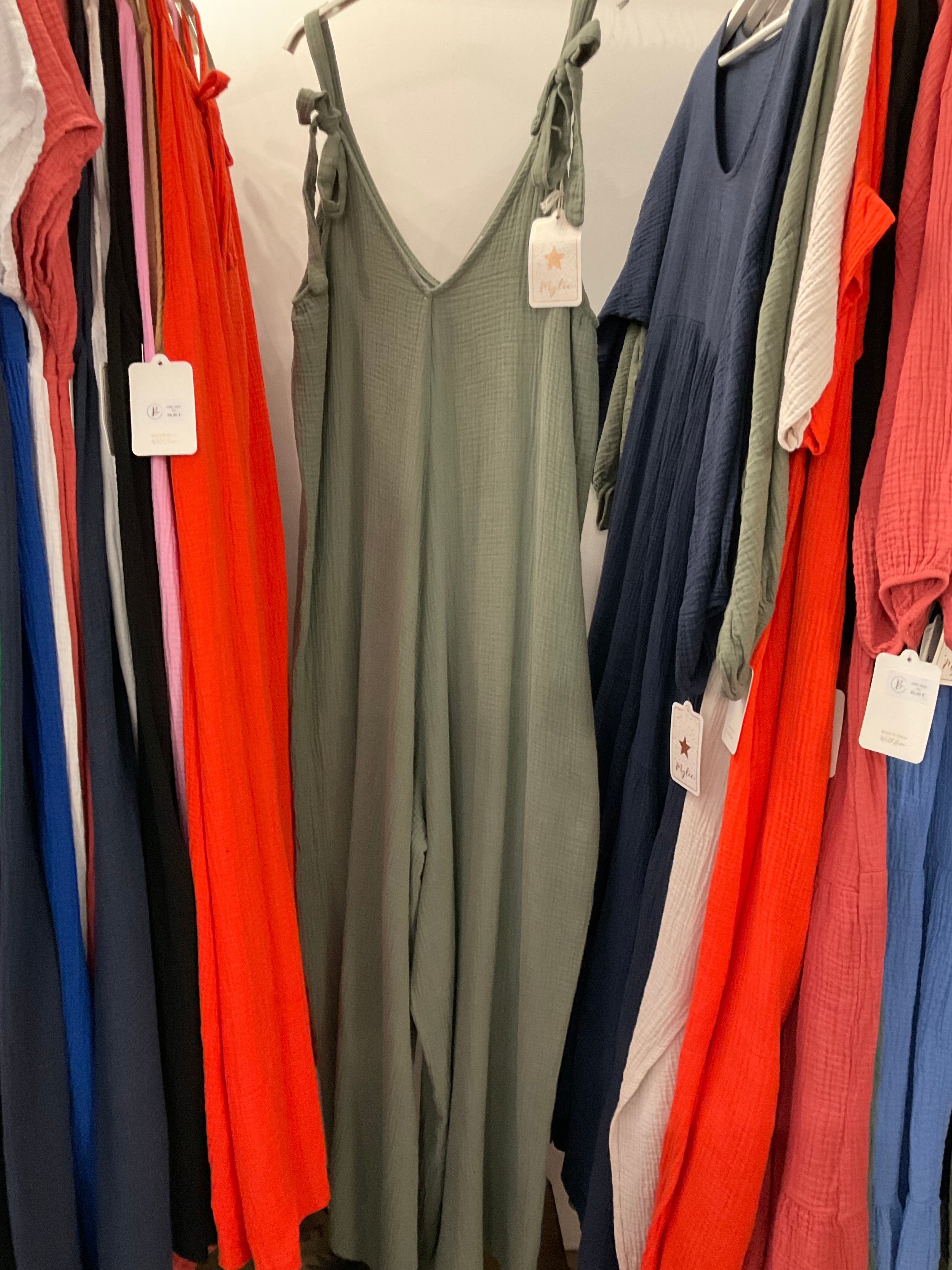 Italian Strappy Cotton Gauze Jumpsuit One Size