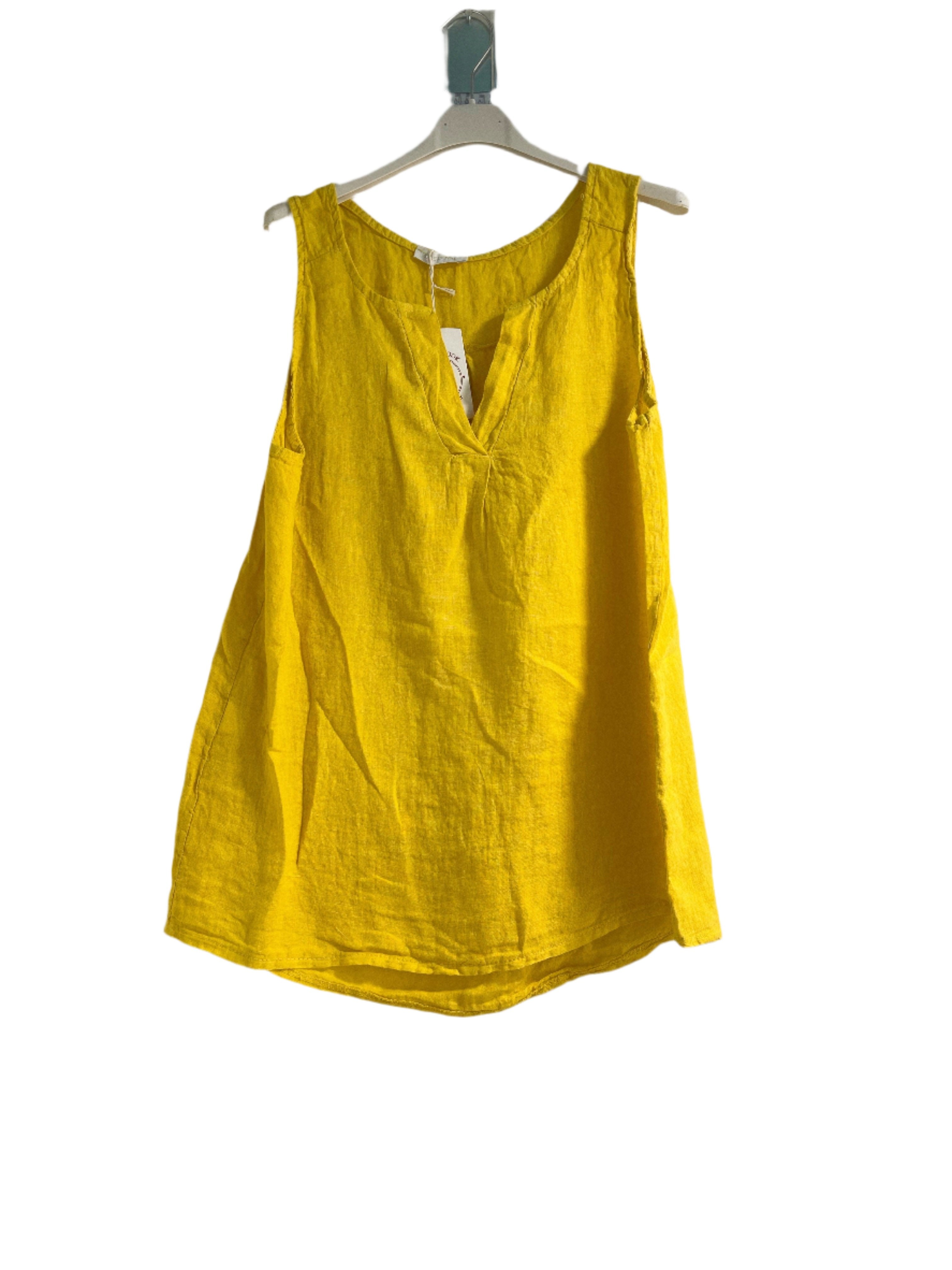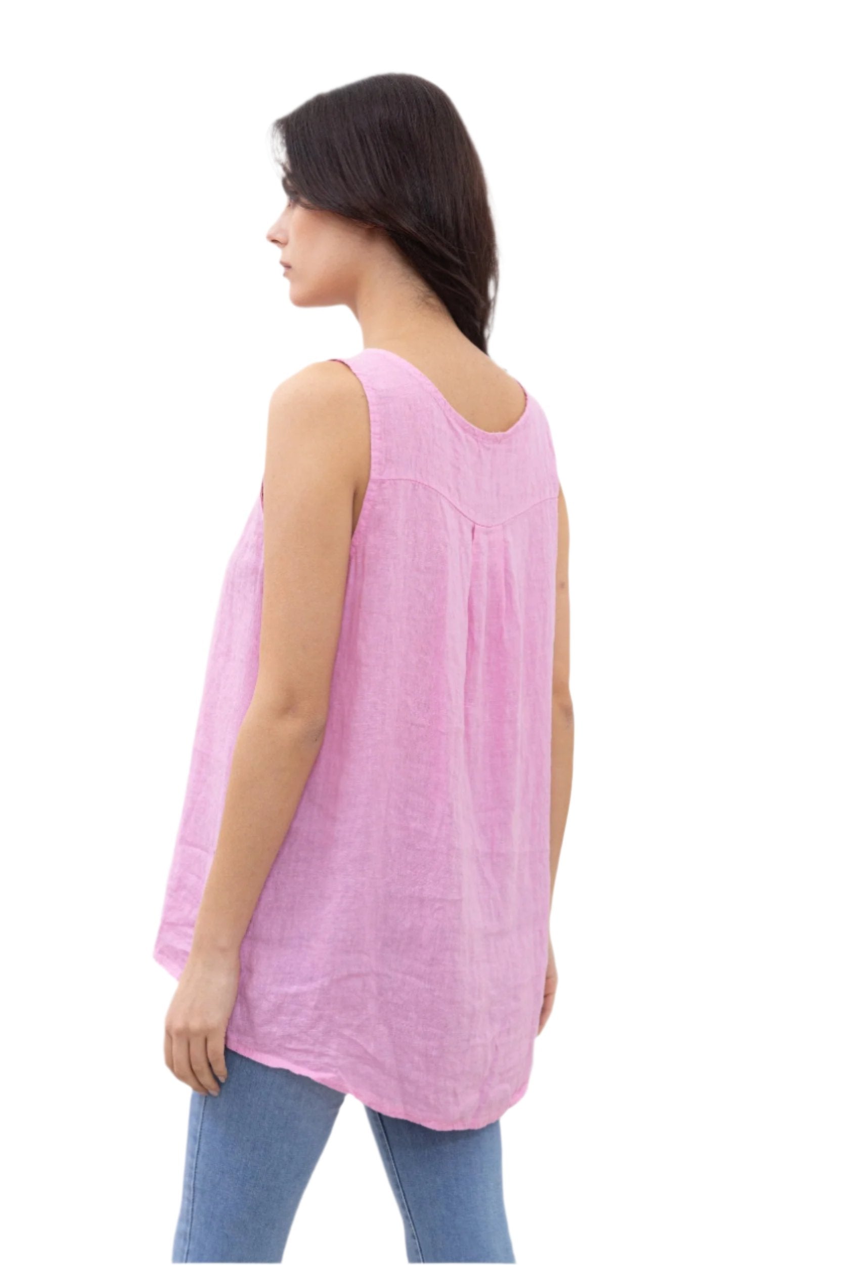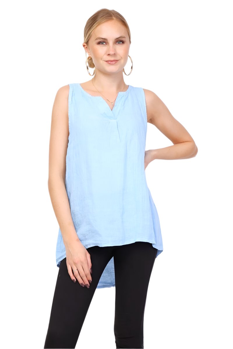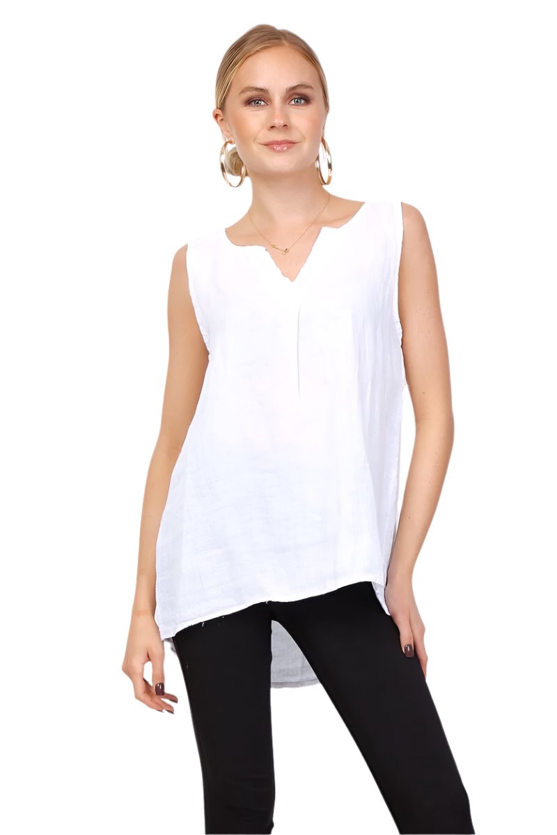 Discover the perfect wardrobe staple with our Sleeveless One Size Pure Linen Vest Top! Available in a variety of colours, this relaxed fit top is made from 100% linen and features a shaped hemline. Designed to fit sizes 40-42 (UK 12-14), it's a versatile and comfortable piece that will elevate any outfit.