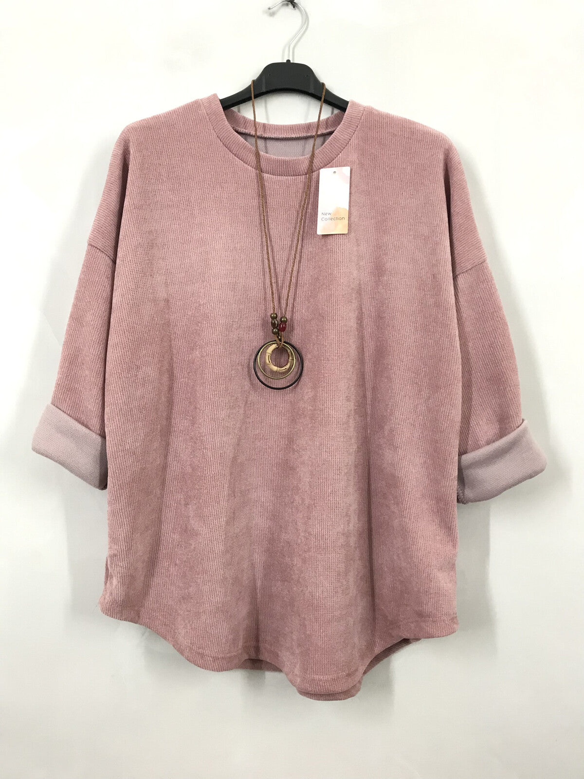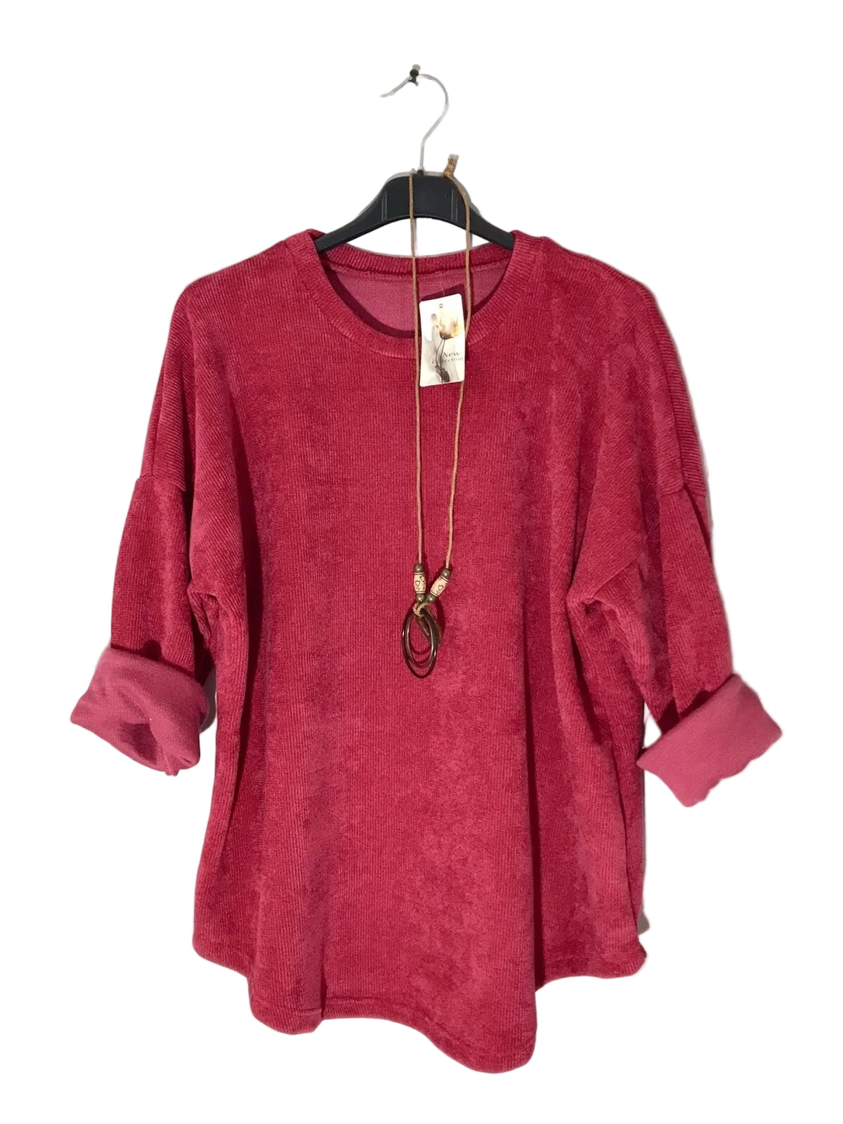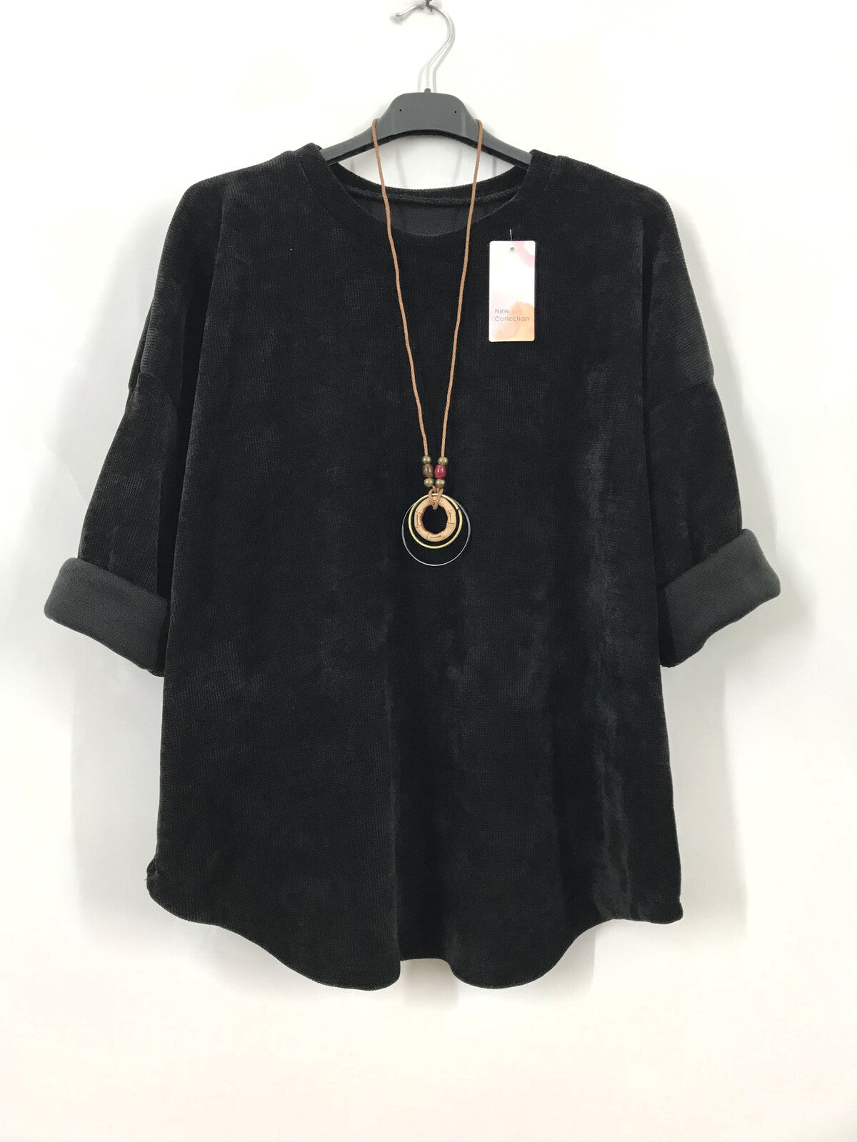 - Velour long sleeved top with necklace