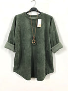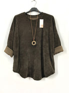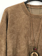 Velour Long Sleeved Top With Necklace