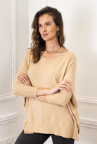 Indulge in the refined comfort of this Italian-made oversized sweater, crafted with a luxuriously soft texture that has a cashmere feel. The relaxed silhouette and round neckline offer understated elegance, while feature long sleeves provide versatile layering options for any season. Designed as a true one-size piece, it gracefully accommodates sizes 36–52 (UK 8-24), ensuring a flattering fit for all. Made with Italian precision and premium materials, this sweater becomes your go-to for effortless, elevated style—equally at home with weekend basics or dressed up for refined occasions.