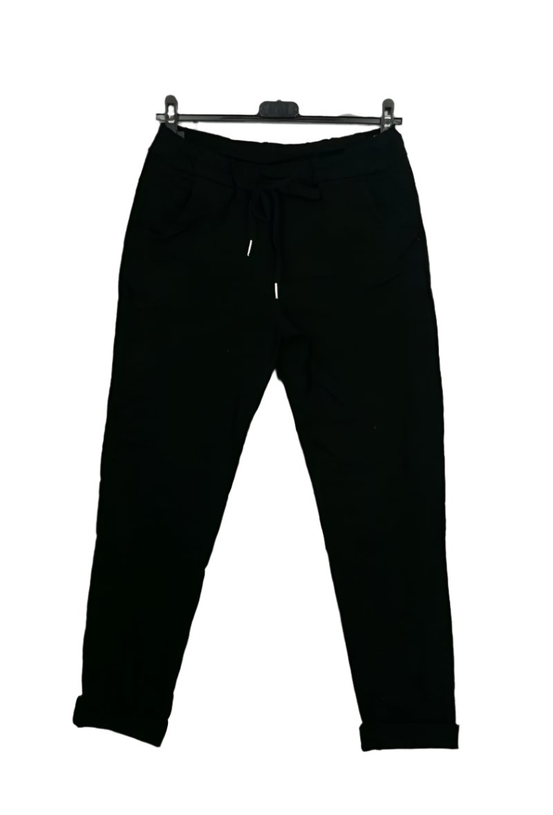 Experience the magic of comfort with our magic stretch Italian trousers! Made from a blend of 95% cotton and 5% elastane, these trousers stretch to fit your body perfectly. The elastic waistband with drawstring fastening provides added comfort while the pockets offer convenience. Available in plus sizes up to 52 (UK 24), these trousers are super comfortable and easy to wear. Say goodbye to uncomfortable clothing and hello to effortless style with our Italian magic stretch trousers!