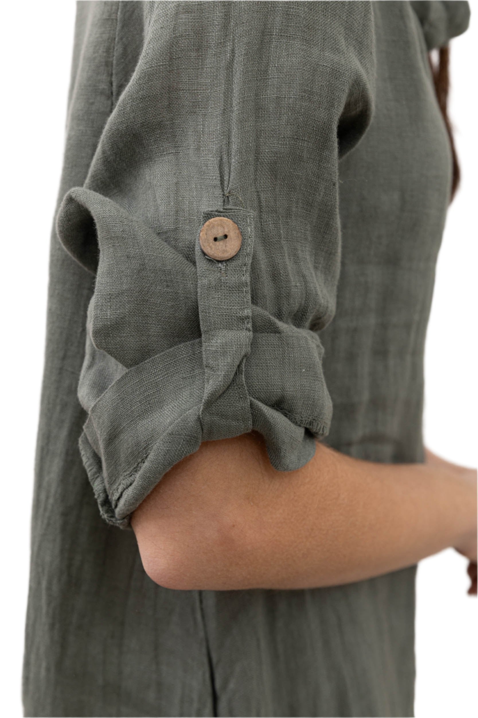 • Three quarter sleeves with button fastening