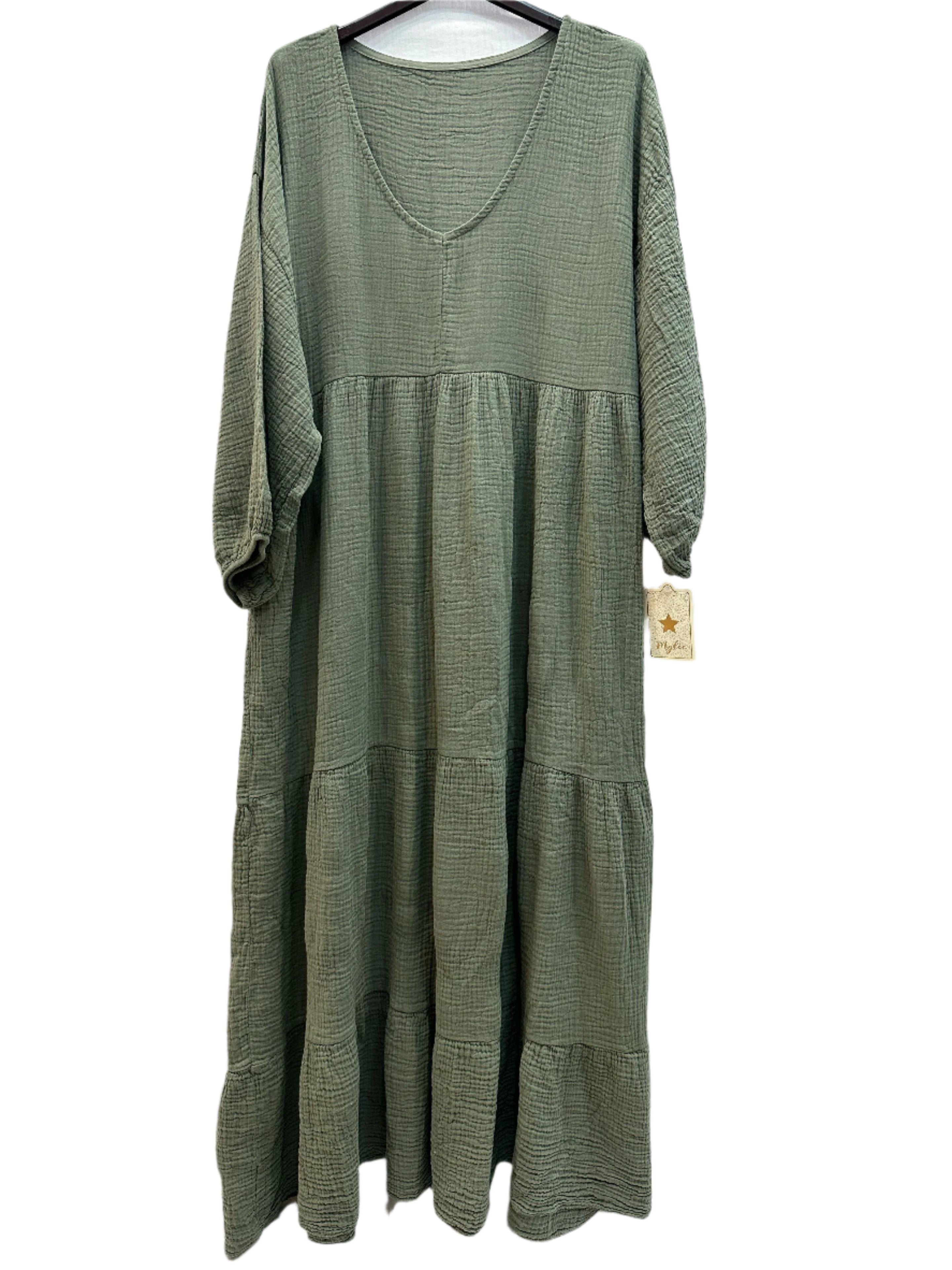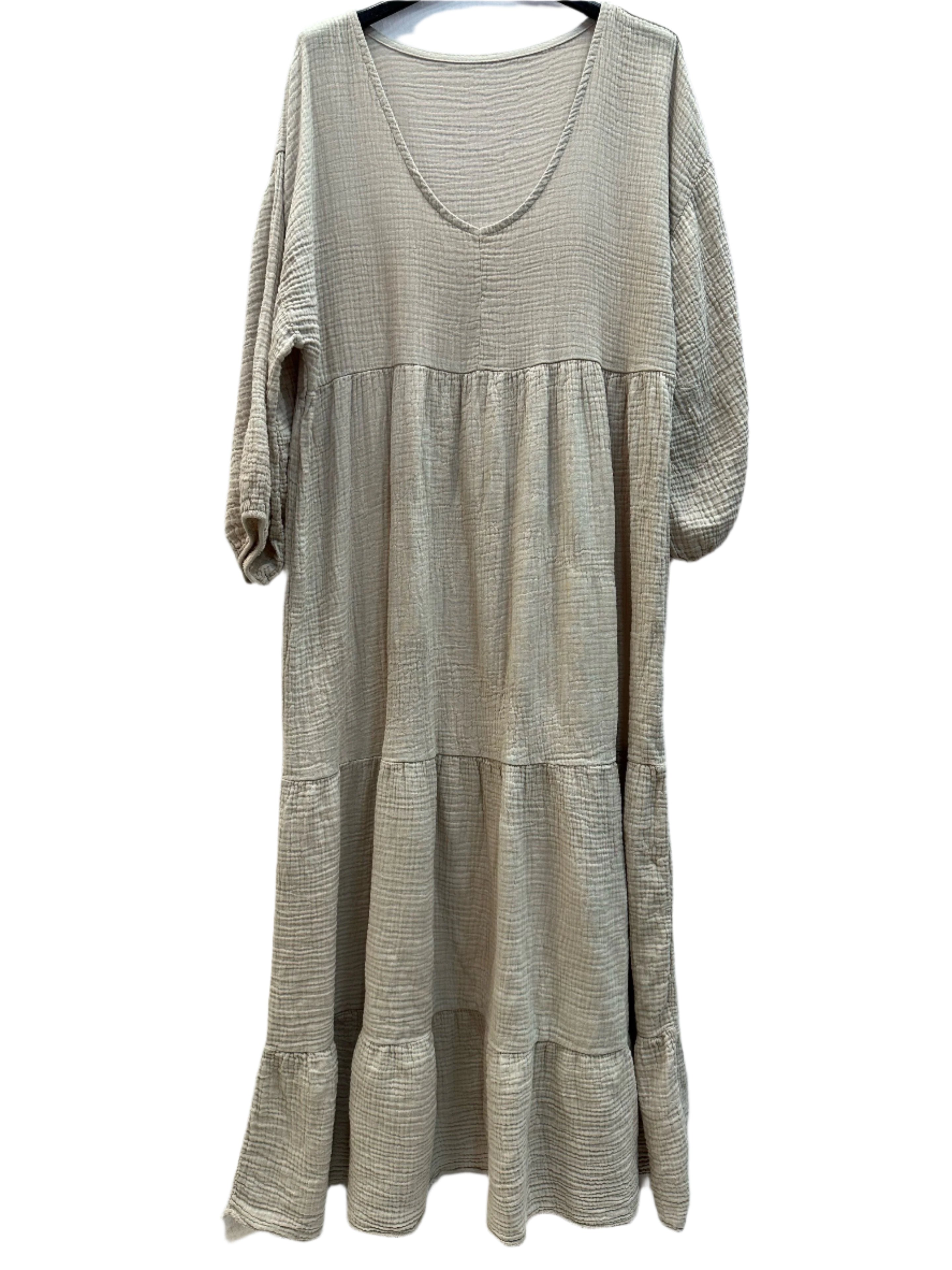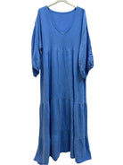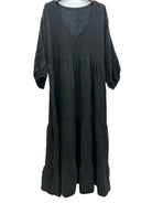 One Size Italian Cotton Gauze Long Sleeved Tiered Maxi Dress