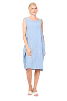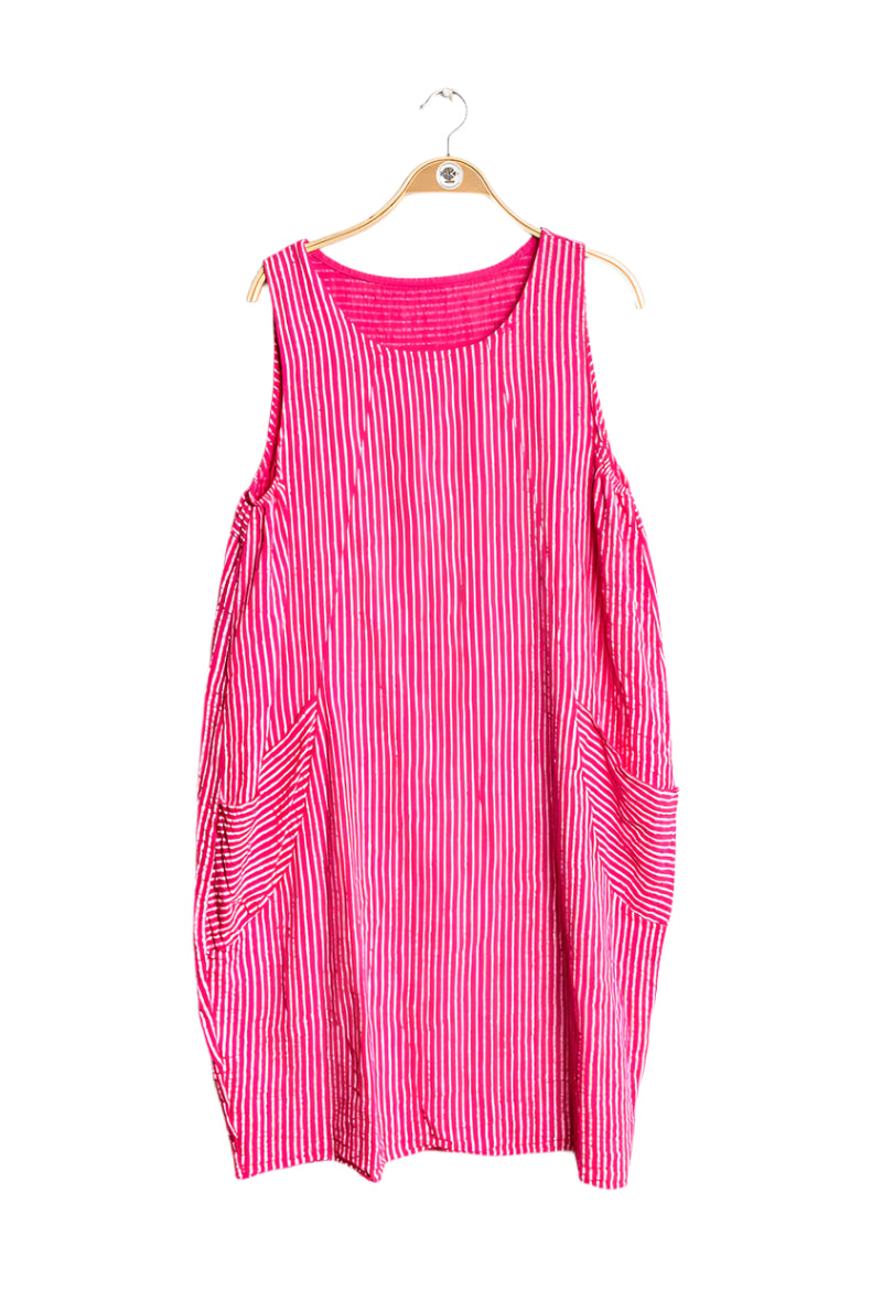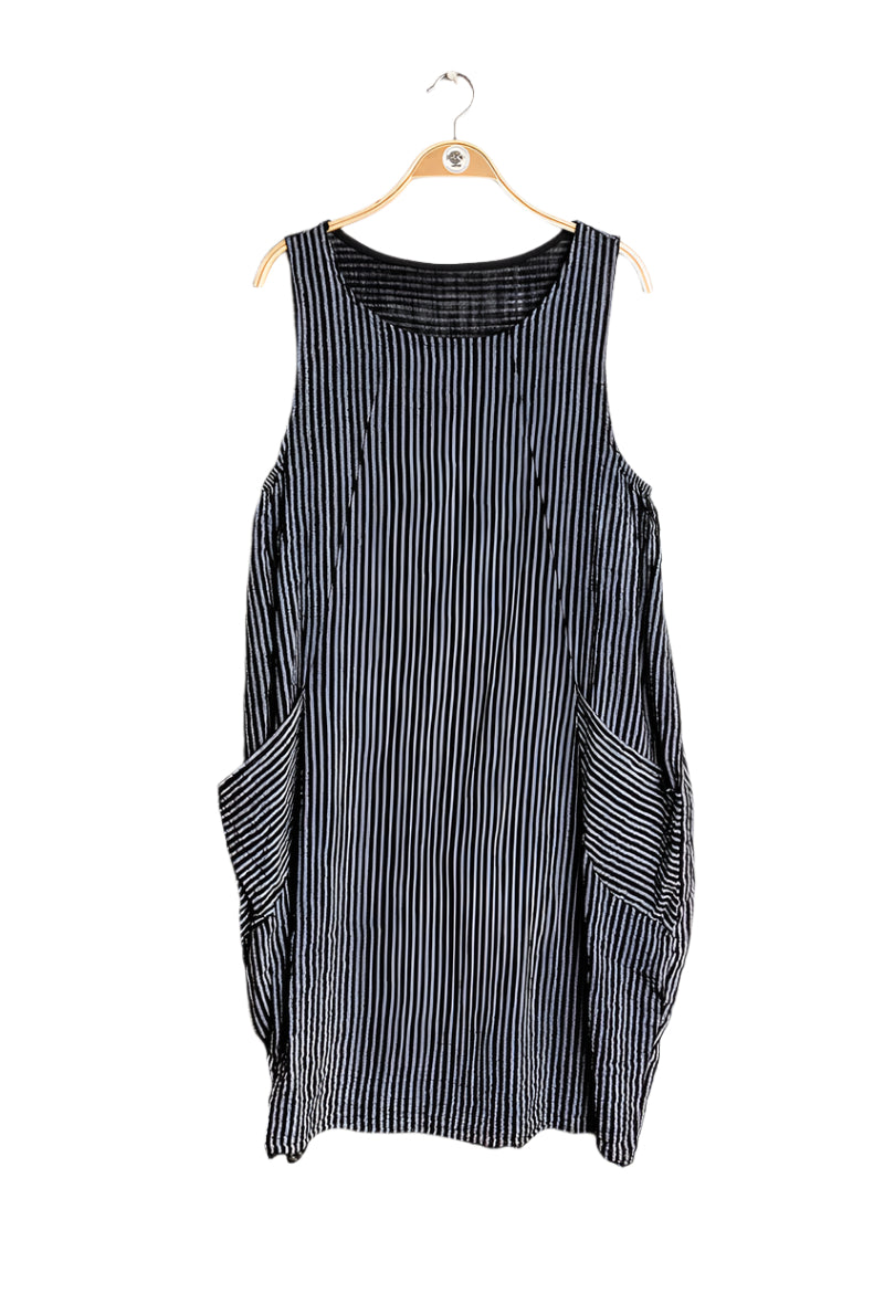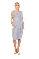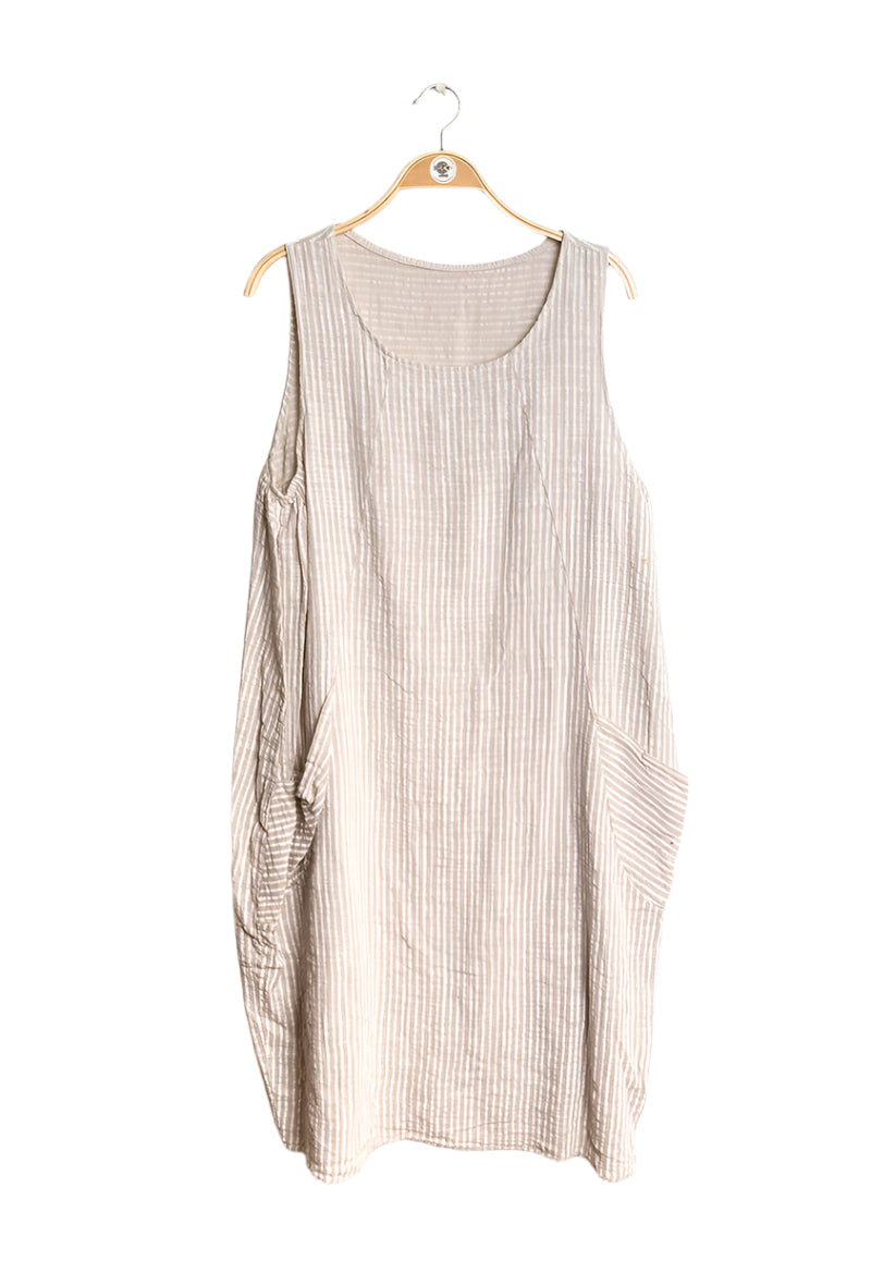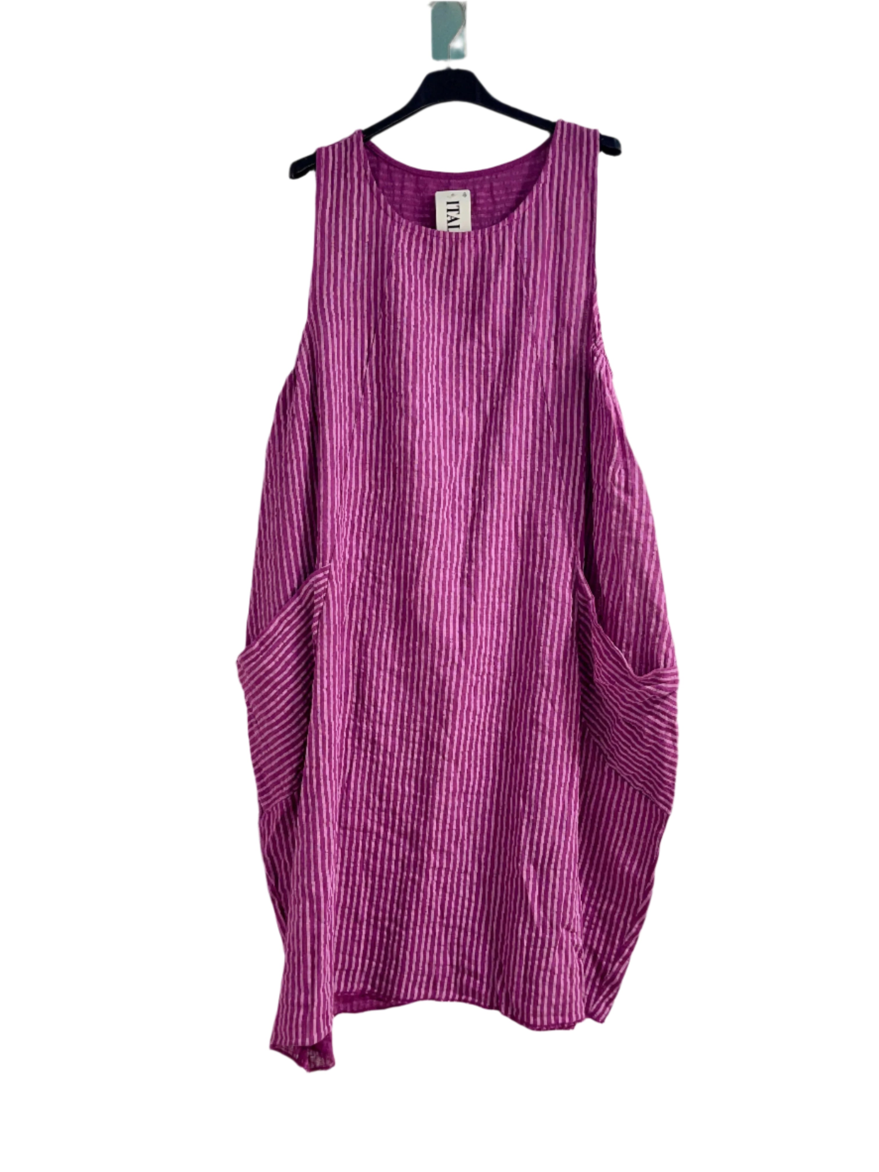Embrace both comfort and style in our Sleeveless Striped 100% Cotton Dress! This Italian made dress features a sleeveless design and roomy front pockets. With a slight elasticated fit at the armholes, it's perfect for most body type. One size fits all, making it incredibly convenient and versatile. Feel confident and chic in this essential super comfy dress!